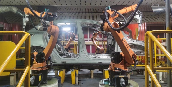 “全长三角造”机器人应用在吉利临海基地白车身焊装产线。 刘俊 摄